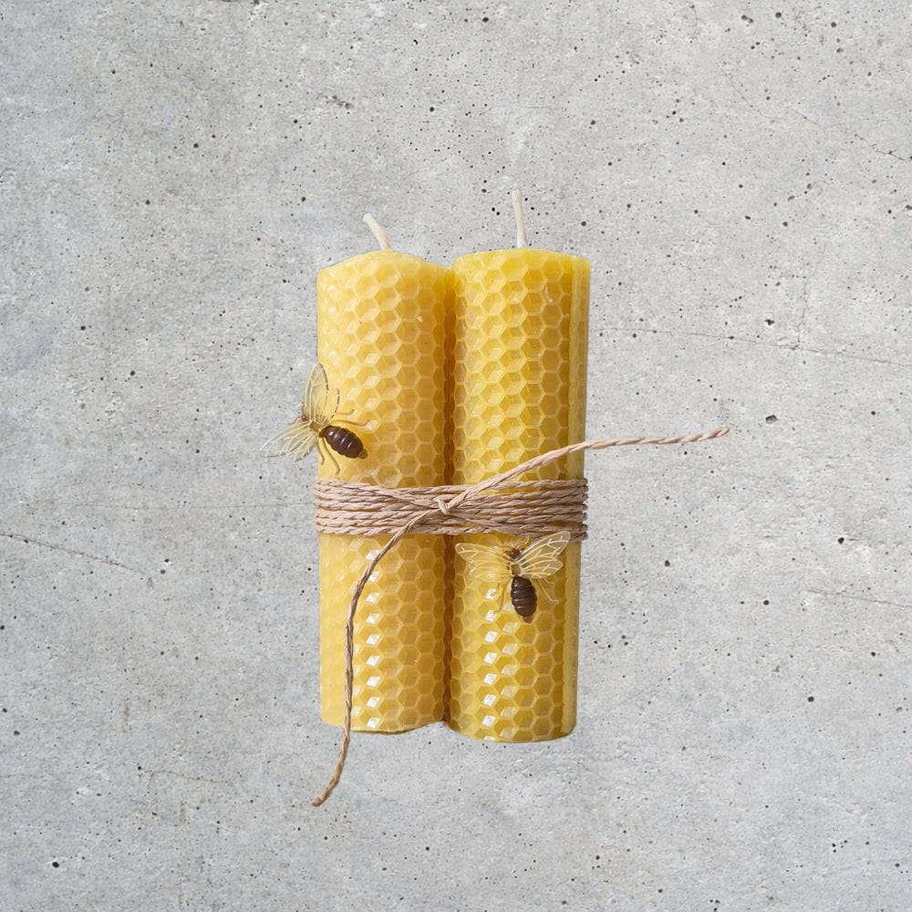 Δύο μικρές κερύθρες ύψους 12cm η καθεμία είναι η ιδανική λαμπάδα για σας που αγαπάτε την μέλισσα αλλά και το αληθινό μελισσοκέρι της.