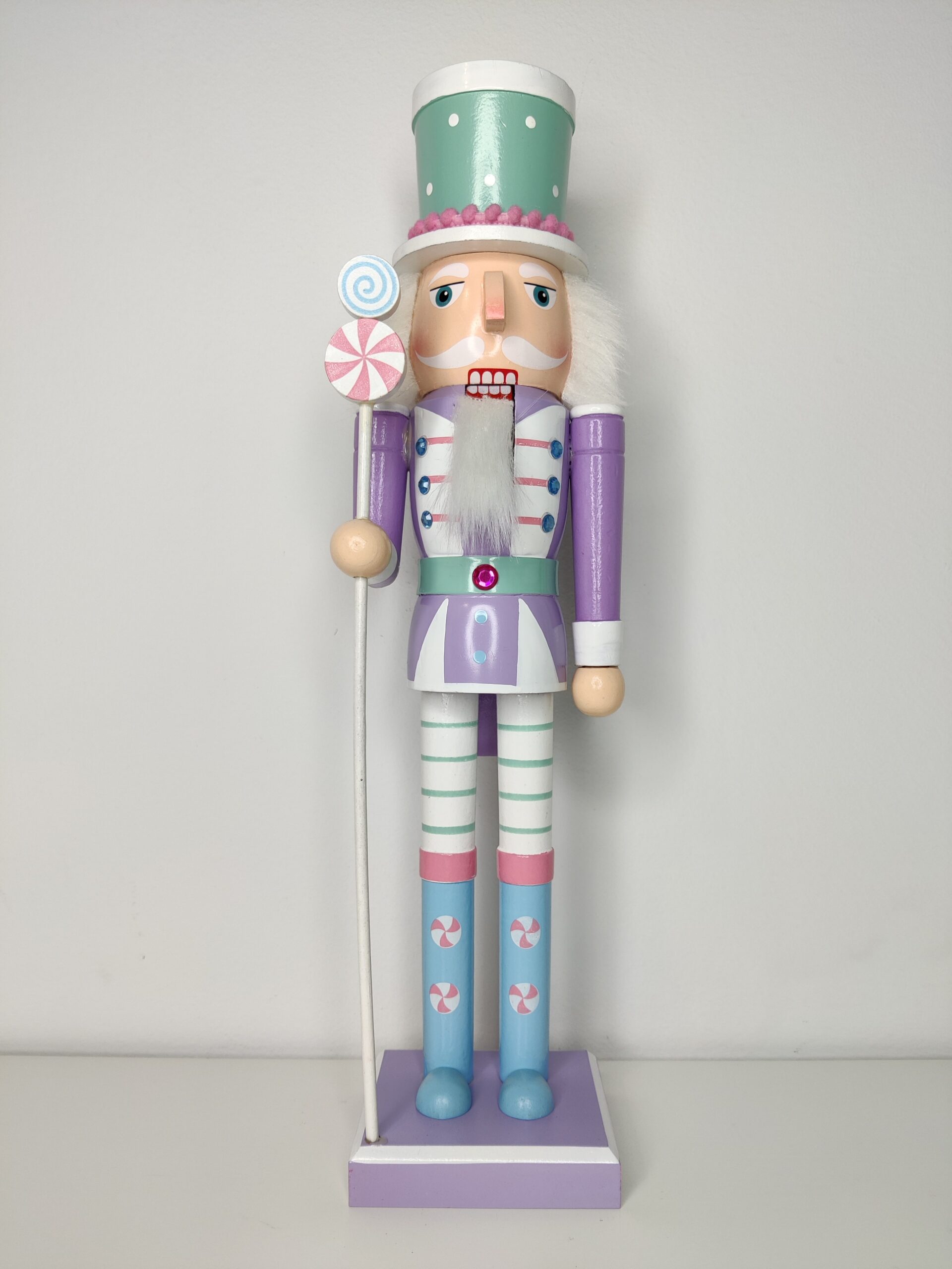 Καλωσορίστε τον ξύλινο διακοσμητικό καρυοθραύστη, έναν γοητευτικό φίλο ύψους 38 εκατοστών που θα φέρει έναν αέρα ζωηρότητας και χαράς στον χώρο σας. Φτιαγμένος από ξύλο και χρωματισμένος σε μωβ παστέλ απόχρωση, αυτός ο διακοσμητικός καρυοθραύστης ξεχωρίζει με την εκλεπτυσμένη του αισθητική.