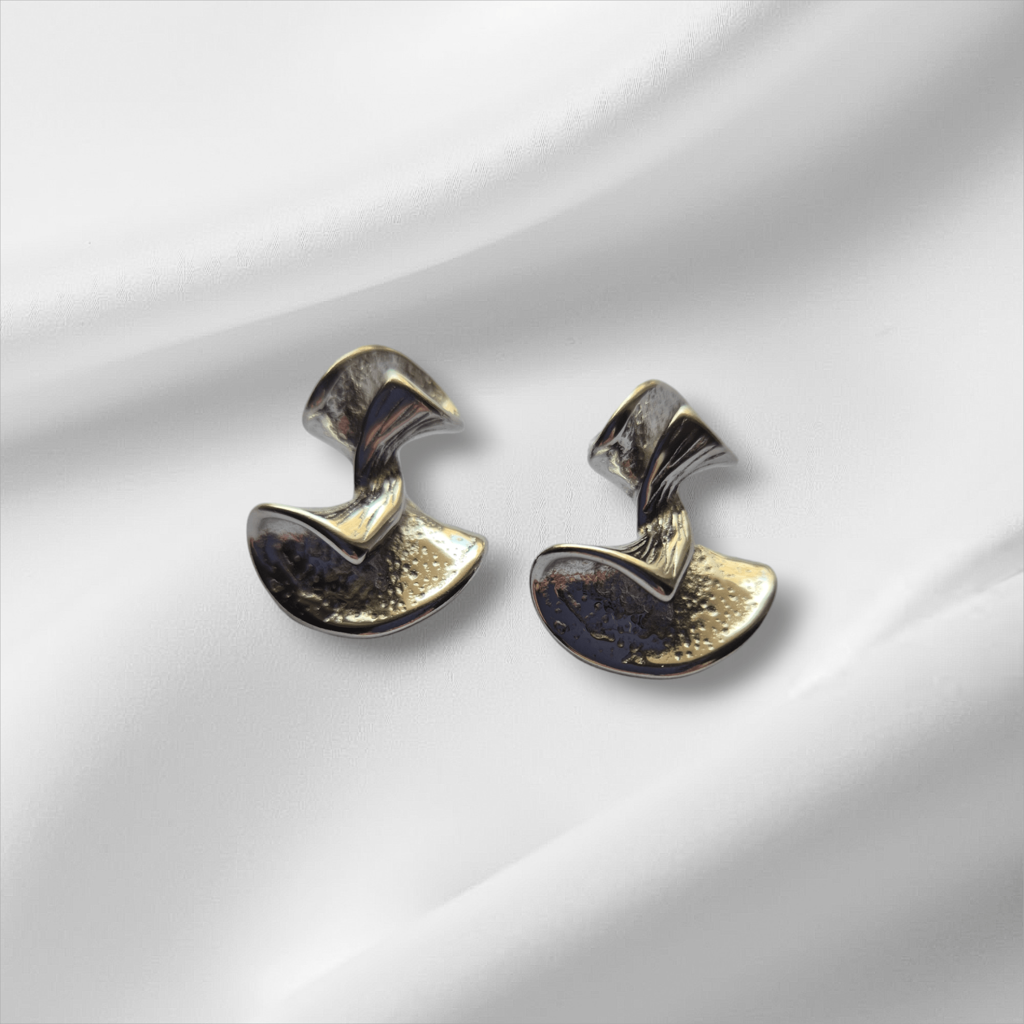 Αυτά τα σκουλαρίκια είναι κατασκευασμένα από ατσάλι και διαθέτουν έναν ιδιαίτερο, μοντέρνο σχεδιασμό. Η μορφή τους είναι ασύμμετρη και κυματιστή, θυμίζοντας καλλιτεχνικές καμπύλες και σπείρες. Ιδανικά για να προσθέσουν μια μοναδική και κομψή πινελιά σε κάθε εμφάνιση, μπορούν να φορεθούν σε ειδικές περιστάσεις ή για να αναδείξουν ένα καθημερινό look.