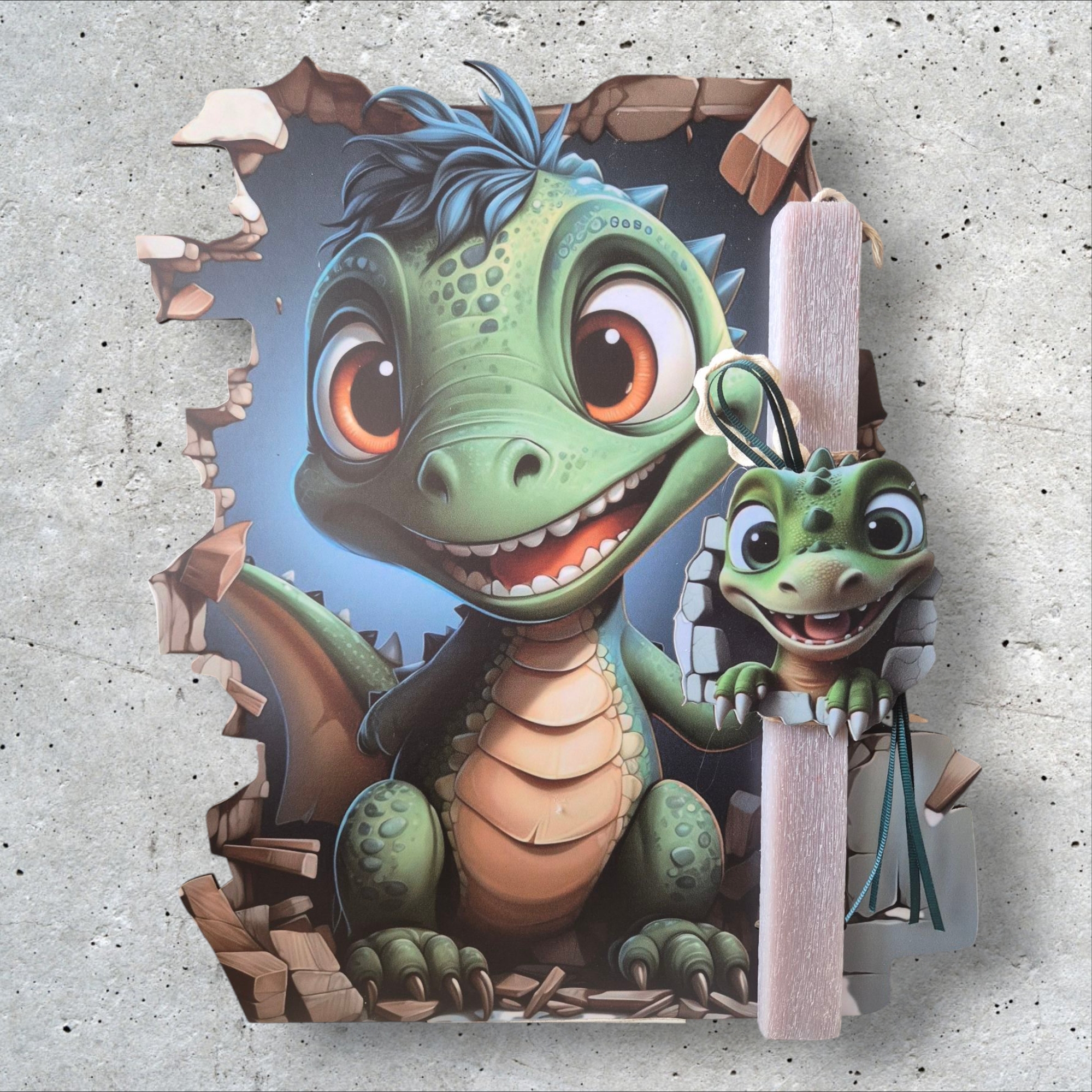 Ένας μικρός δεινόσαυρος ήρθε να φωτίσει το Πάσχα σου! Με κερί στολισμένο με ξύλινο στοιχείο, αυτό το χαριτωμένο δεινοσαυράκι είναι έτοιμο να ταξιδέψει σε προϊστορικές περιπέτειες. Και το καλύτερο; Συνοδεύεται από ένα διακοσμητικό ξύλινο δεινόσαυρο που θα μείνει μαζί σου και μετά την Ανάσταση γιατί οι δεινόσαυροι μπορεί να εξαφανίστηκαν, αλλά αυτός θα μείνει για πάντα!