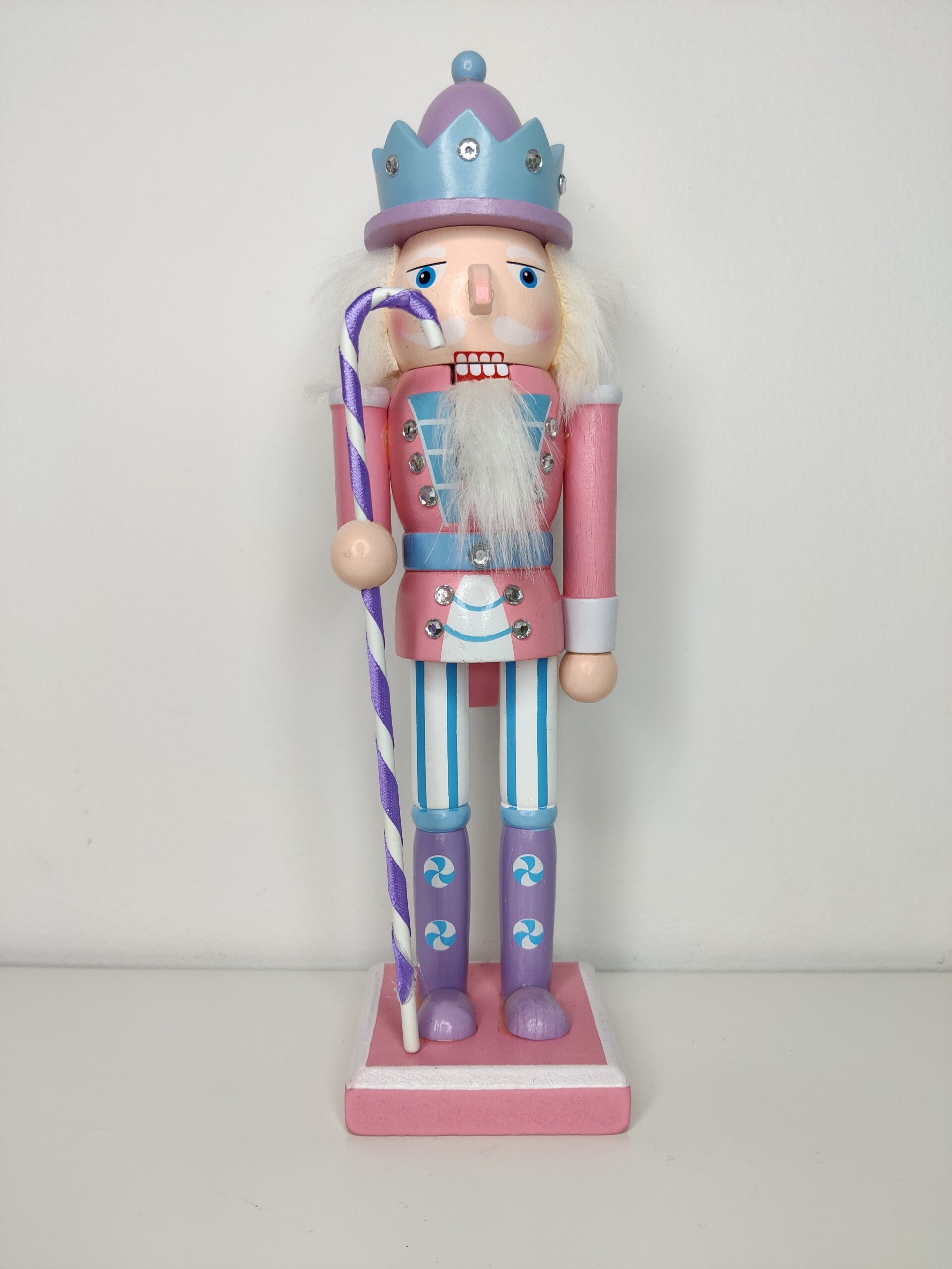 Καλωσορίστε τον λαμπερό ξύλινο διακοσμητικό καρυοθραύστη ύψους 25 εκατοστών, μια γοητευτική προσθήκη στη διακόσμηση σας που θα φέρει χαρά και κομψότητα. Ο ροζ παστέλ χρωματισμός του δημιουργεί μια ατμόσφαιρα απαλής γοητείας, ενώ το στέμα προσθέτει μια νότα βασιλικής εκλεπτυσμένης κομψότητας.