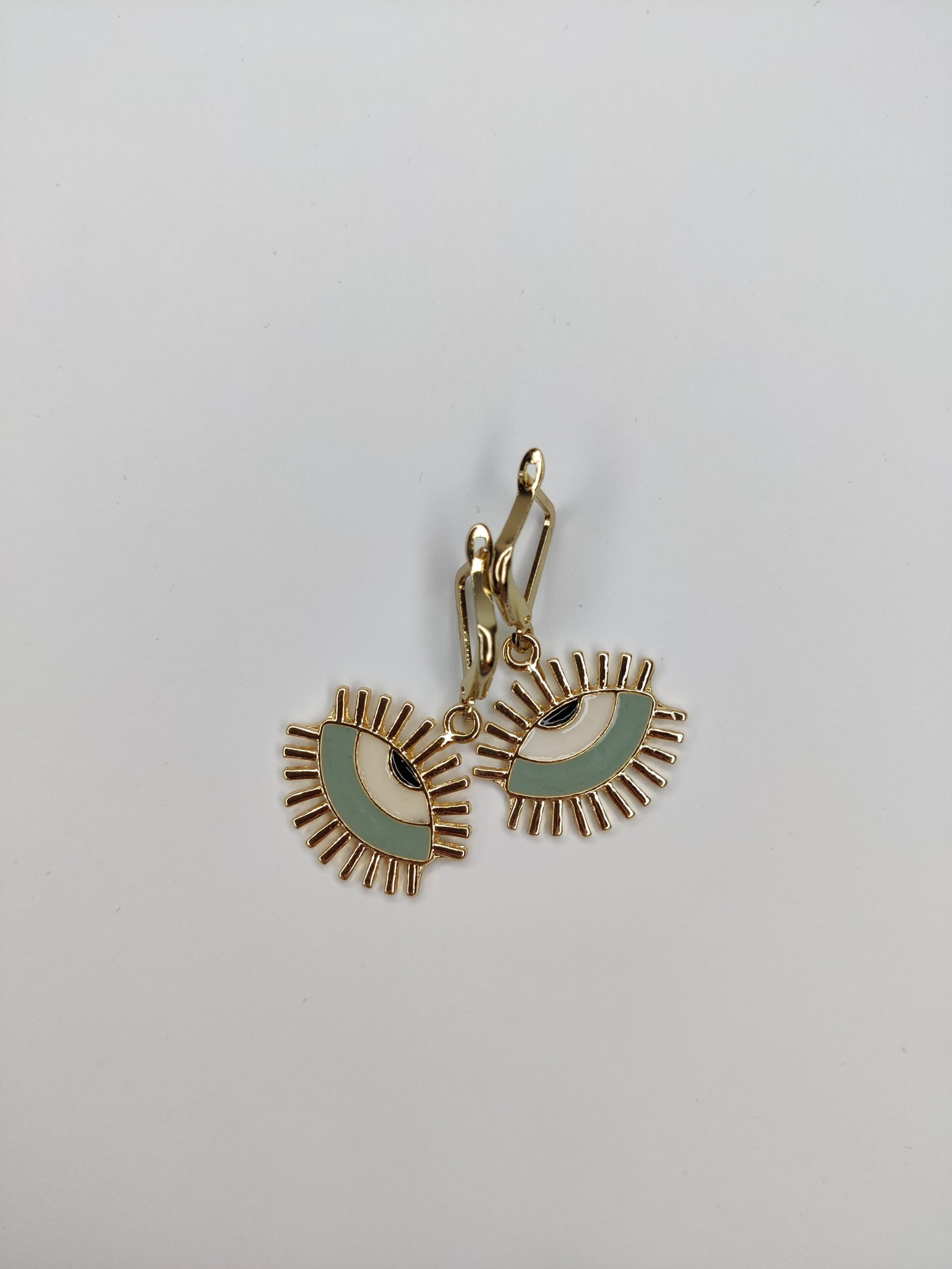 Μεταλλικά ορειχάλκινα χρυσά σκουλαρίκια με στοιχείο μάτι