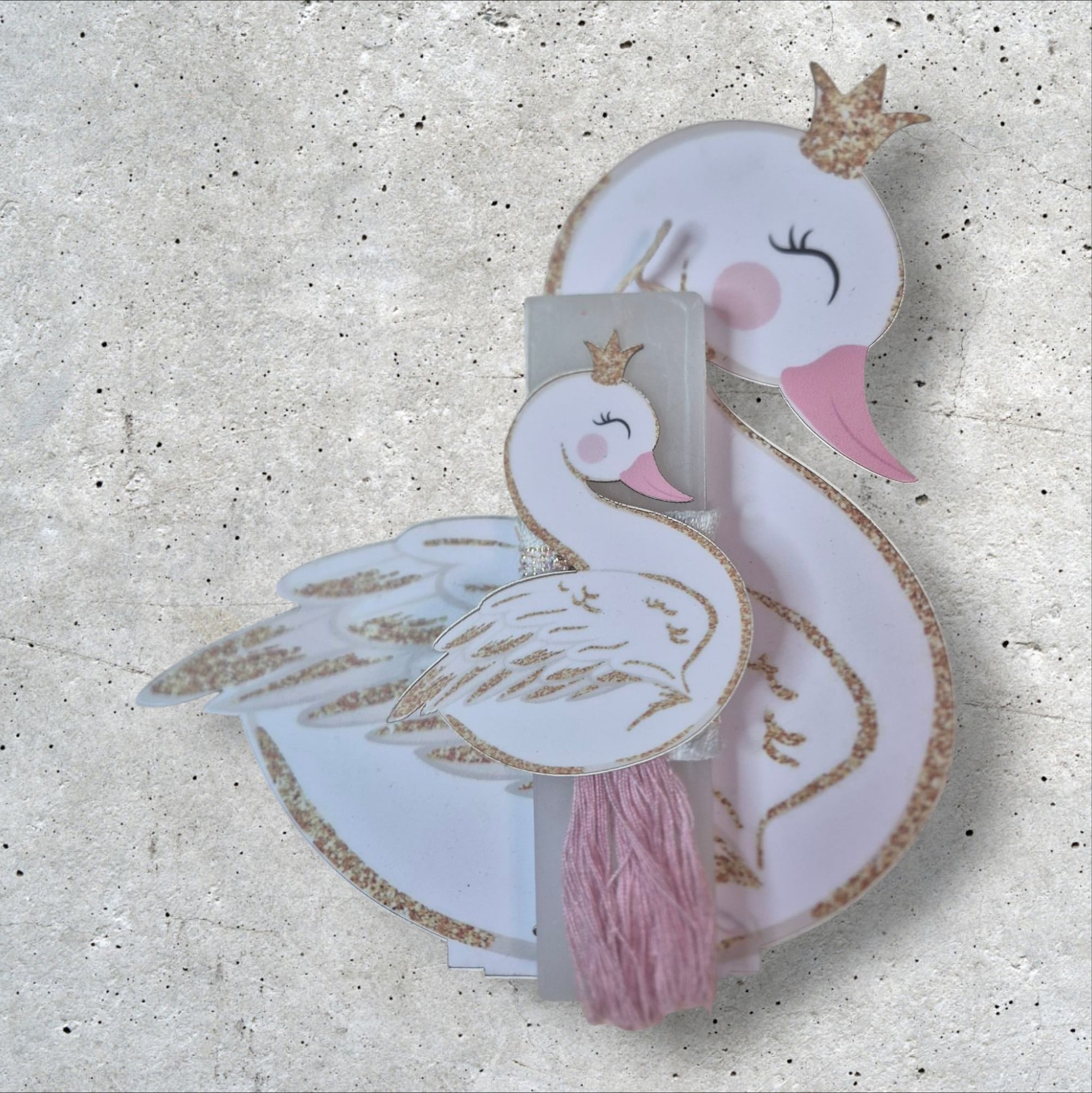 Αν ψάχνεις μια λαμπάδα που αποπνέει χάρη και φινέτσα, μόλις τη βρήκες! Με κερί ύψους 22 cm και ξύλινο στοιχείο έναν πανέμορφο κύκνο με στέμμα, αυτή η λαμπάδα είναι βγαλμένη από παραμύθι. Συνοδεύεται από ένα εντυπωσιακό ξύλινο διακοσμητικό 25 cm με τον ίδιο αρχοντικό κύκνο, ιδανικό για να στολίσει το δωμάτιο ή το γραφείο σου. Ένα σύμβολο ομορφιάς και κομψότητας που θα σε συνοδεύει και μετά το Πάσχα!