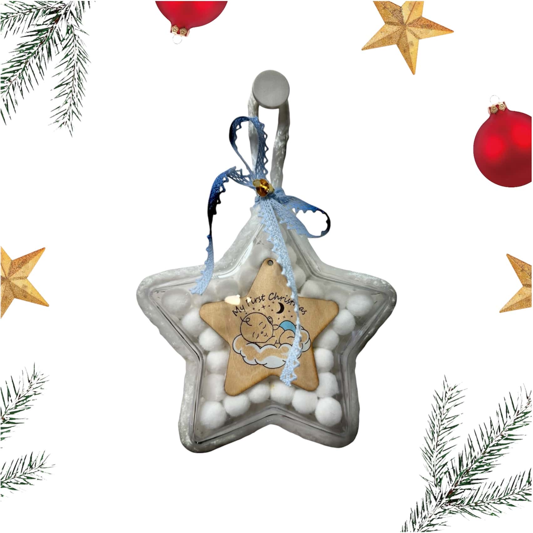 Γιορτάστε τα πρώτα Χριστούγεννα του μικρού σας πρίγκιπα με αυτό το υπέροχο χειροποίητο γούρι! Με την επιγραφή “My First Christmas”, είναι το ιδανικό αναμνηστικό για το μωρό σας που ζει την πρώτη του γιορτινή περίοδο.