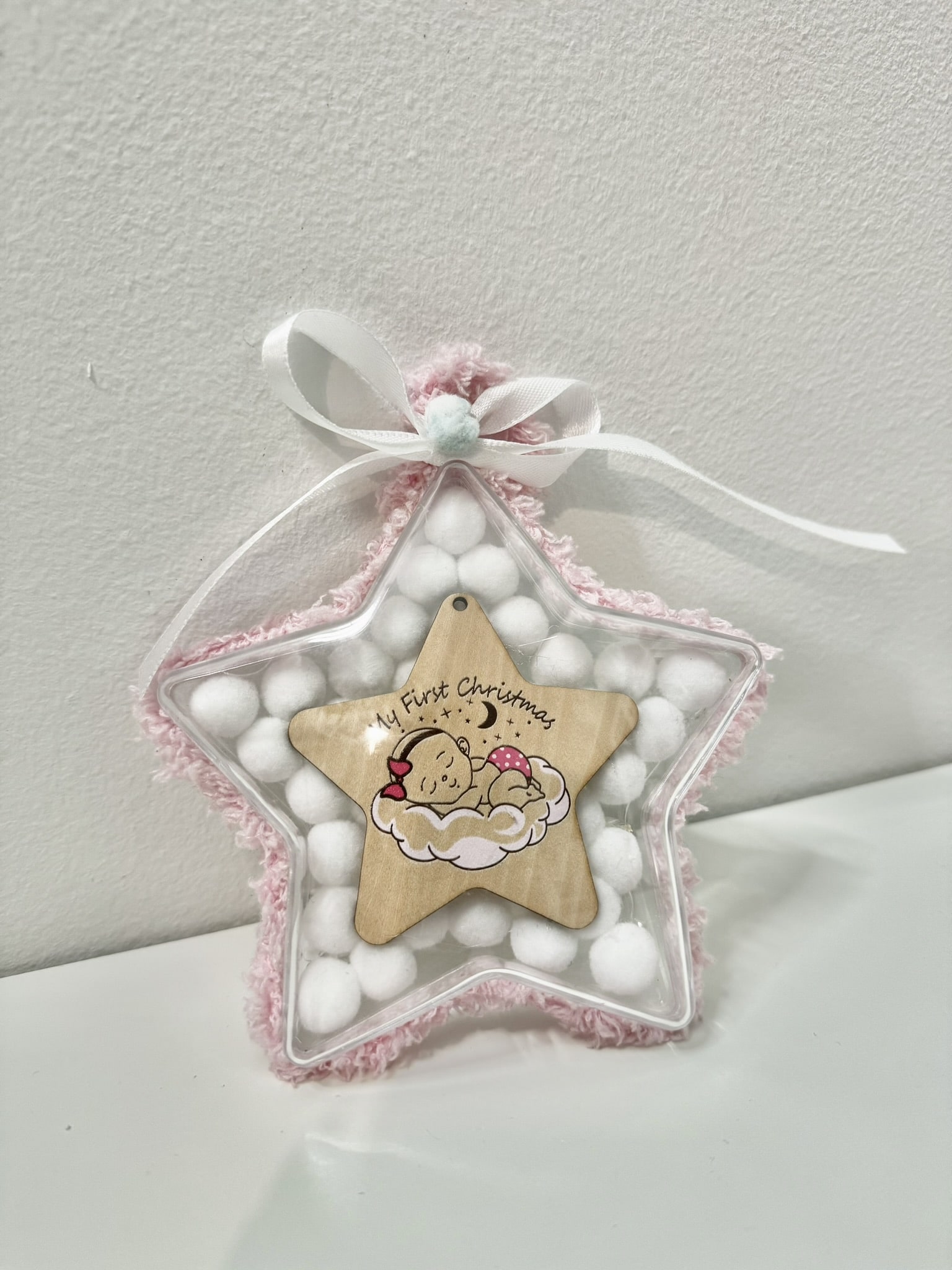Γιορτάστε το πρώτο μαγικό χριστουγεννιάτικο ταξίδι της μικρής σας πριγκίπισσας με αυτό το πανέμορφο χειροποίητο γούρι! Με την επιγραφή “My First Christmas”, είναι το ιδανικό αναμνηστικό για το μωρό σας που ζει τα πρώτα του Χριστούγεννα.