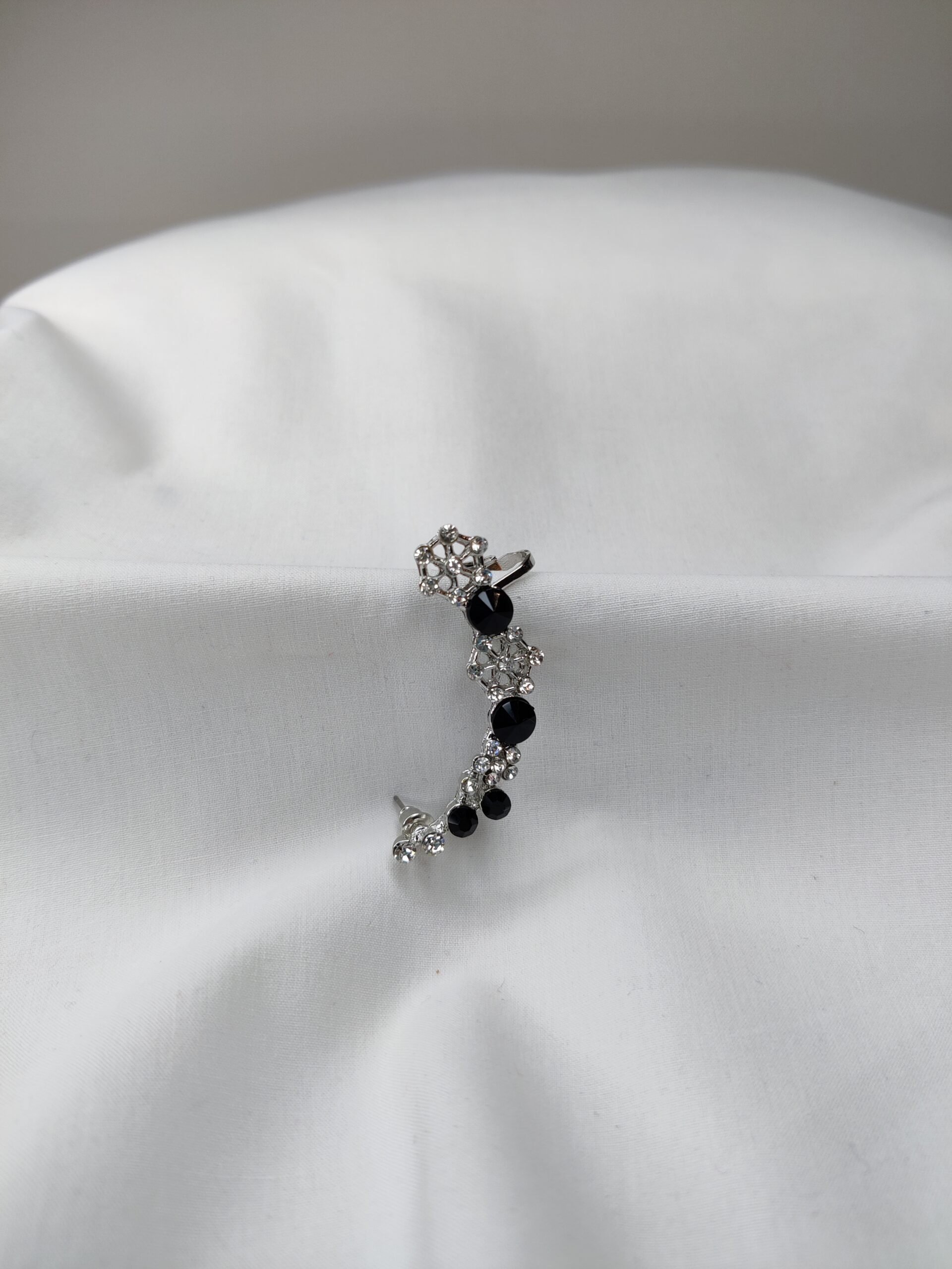Το σκουλαρίκι ear cuff είναι κατασκευασμένο από ατσάλι σε ασημί απόχρωση,ένα μέταλλο που δεν σκουριάζει ή λεκιάζει και μαύρη πέτρα.