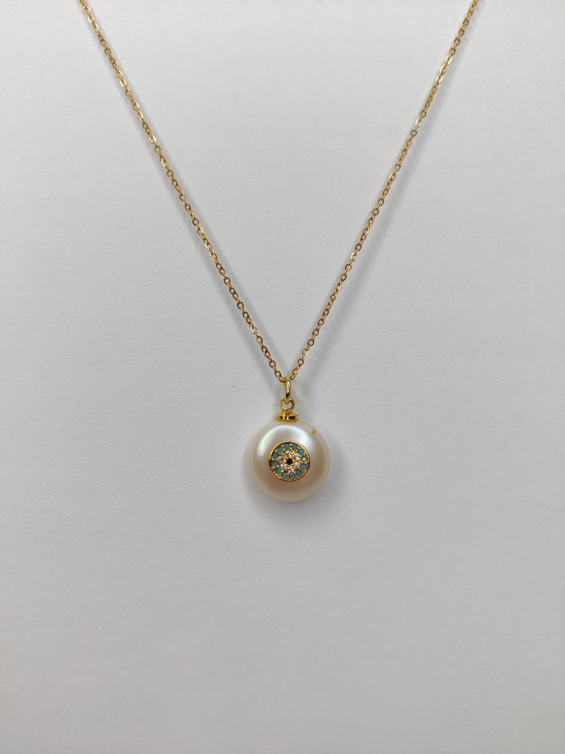Μικρό μαργαριτάρι μάτι σε ατσάλινη χρυσή αλυσίδα 44-45 cm