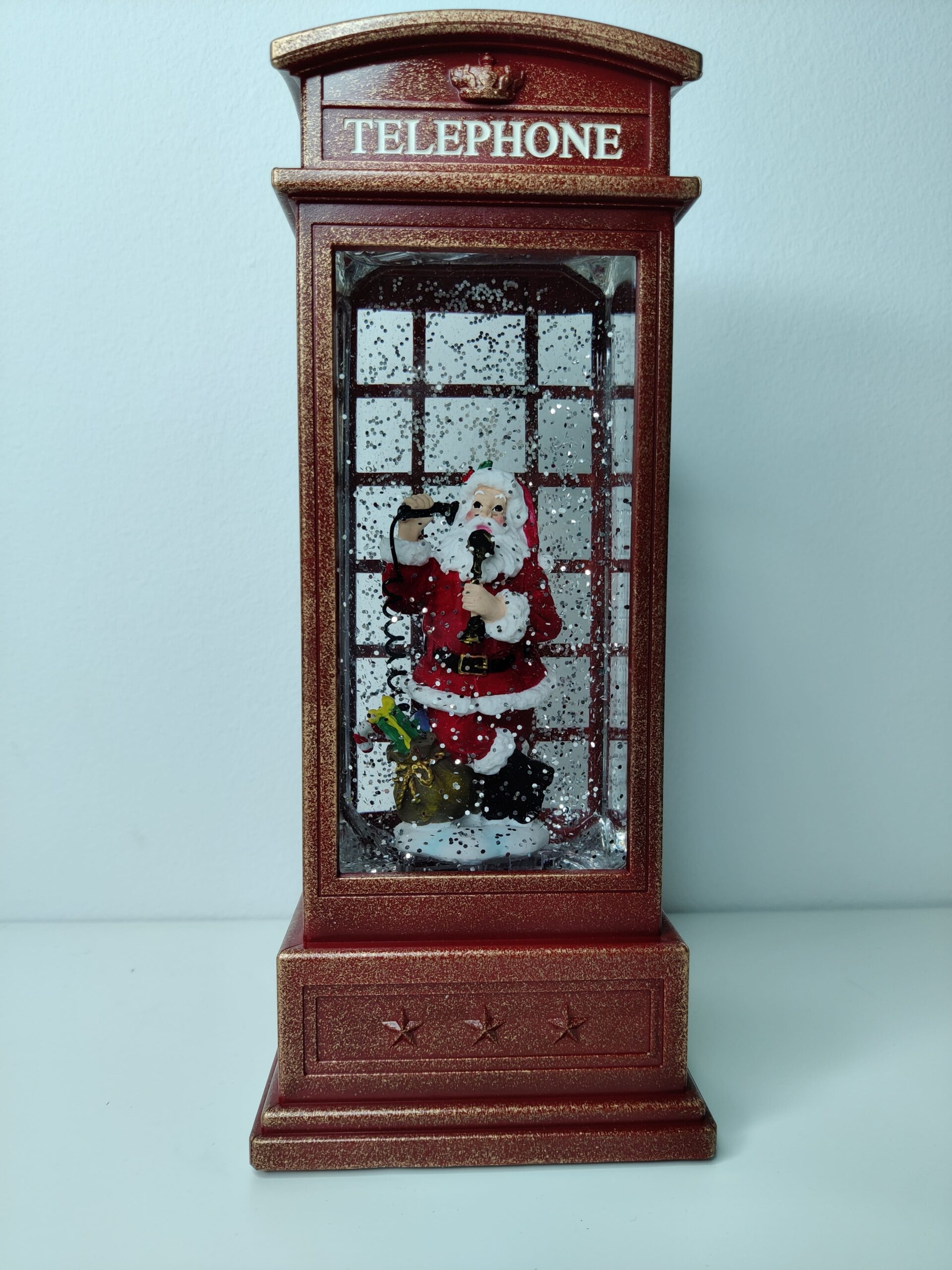 Χριστουγεννιάτικο αγγλικό τηλέφωνο που περιέχει μέσα τον Άγιο Βασίλη. Λειτουργεί με μπαταρίες (3AA, δεν περιλαμβάνονται) και καλώδιο USB (περιλαμβάνεται).