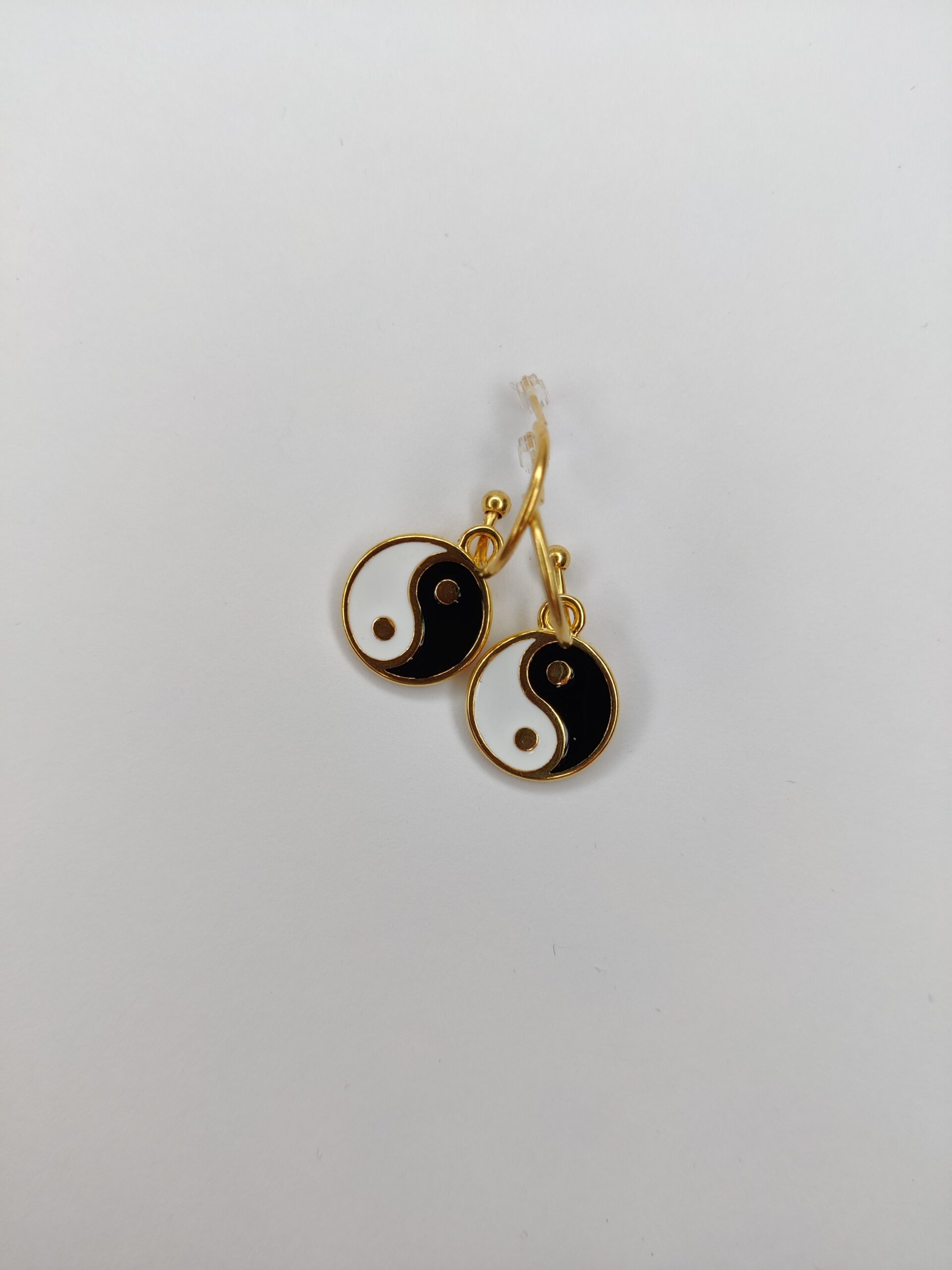 Μεταλλικά σκουλαρίκια κατασκευασμένα από ορείχαλκο και σμάλτο σε χρυσή απόχρωση.